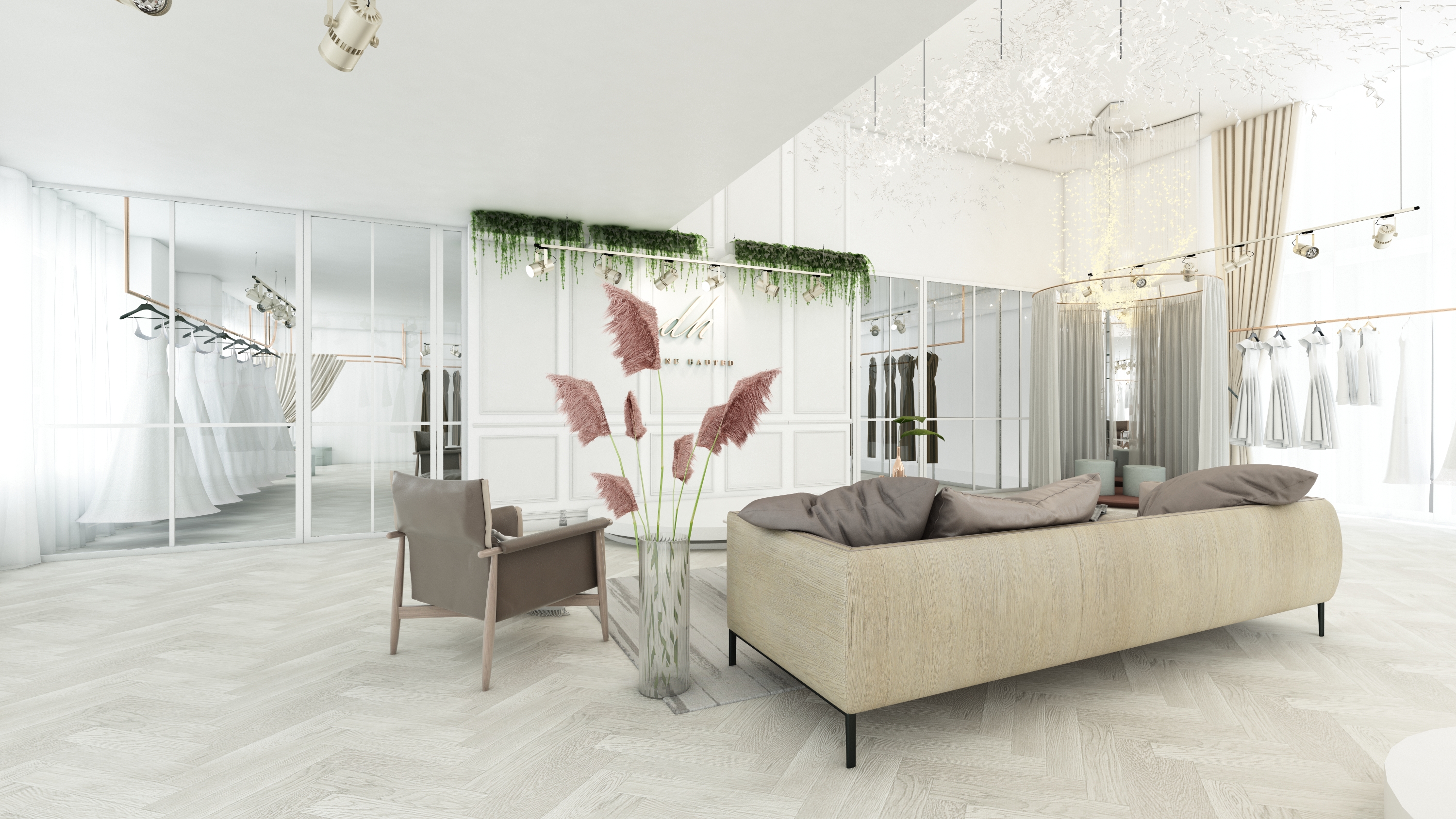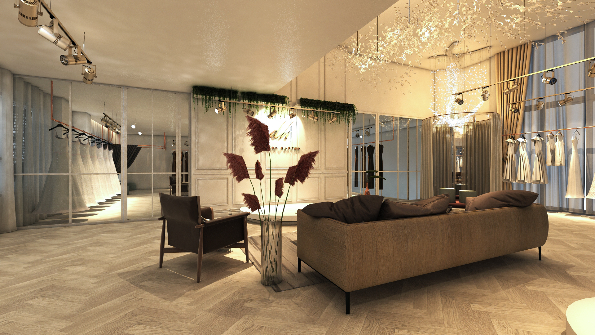 Bridal Shop is hallow place to continue the myth, somewhere couples go to another step. The concept “Gown’s Myth Fairyland” is derived from the myth of marriage. From the design above, the modern classic panel, gold frame and furniture in neutral colours to turns the interior into somewhere like fairyland and a wish to a married couple.